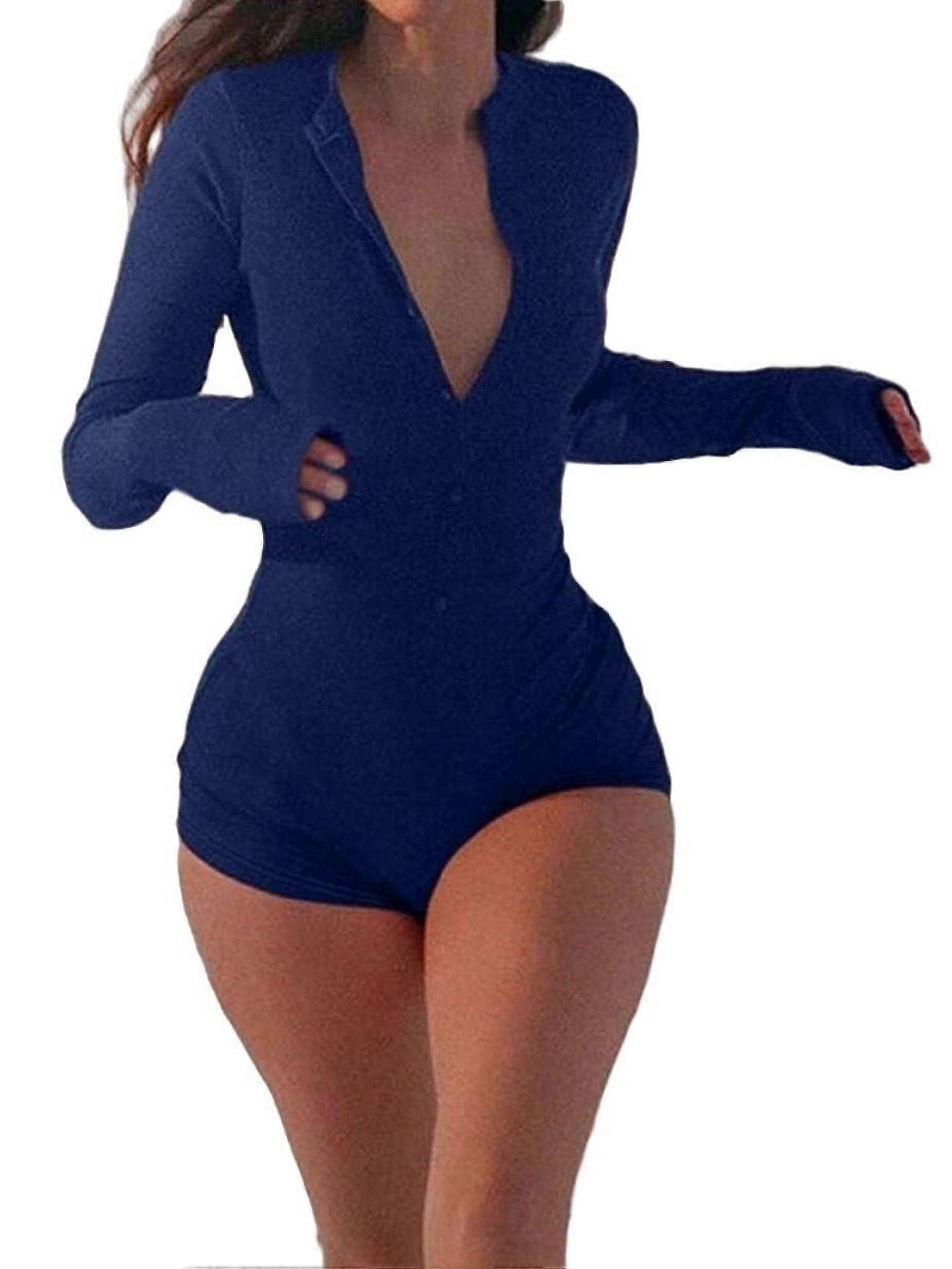 Women Unitards Solid Navy Blue Color Round Neck Long Sleeve Casual