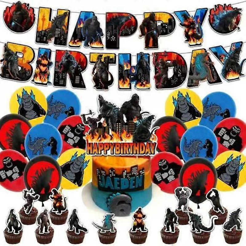 Godzillas VS KingKongs Birthday Party Decoration Anime Cartoon Balloon Set Cake Topper Baby Shower Halloween Party Supplies Gift