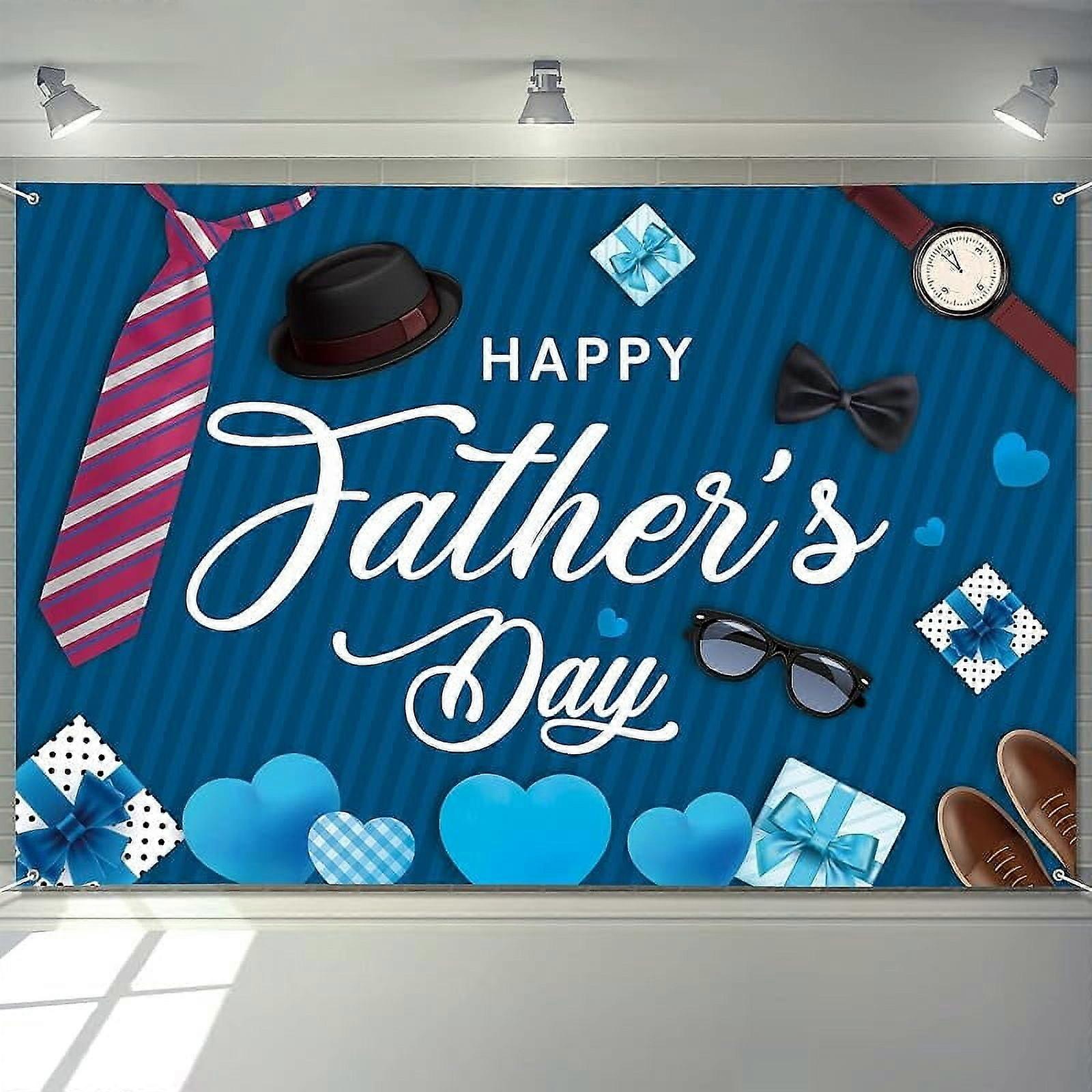 Large 71"x47" Happy Father's Day Banner - Bluish Grey Tie & Shoes Design, Indoor/Outdoor Party Backdrop, Garden,Yard,Home Decor