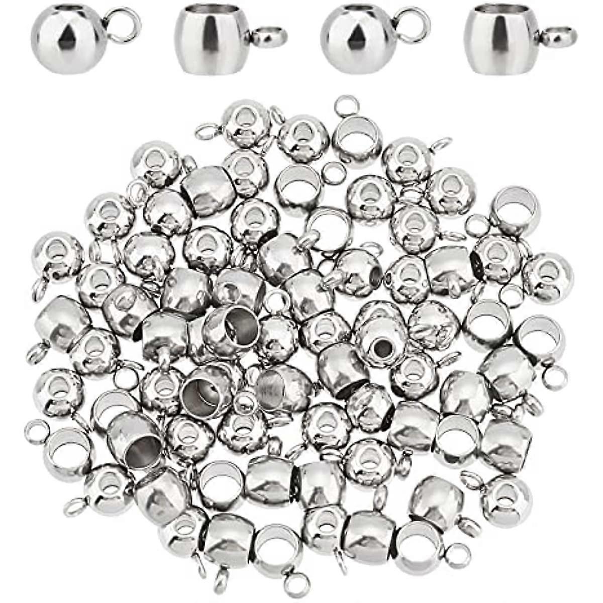 1Box 80Pcs 2 Styles Hanger Links Connector Beads, Stainless Steel Round Bail Spacer Beads 9mm Hole, European Metal Carrier Beads for Bracelet