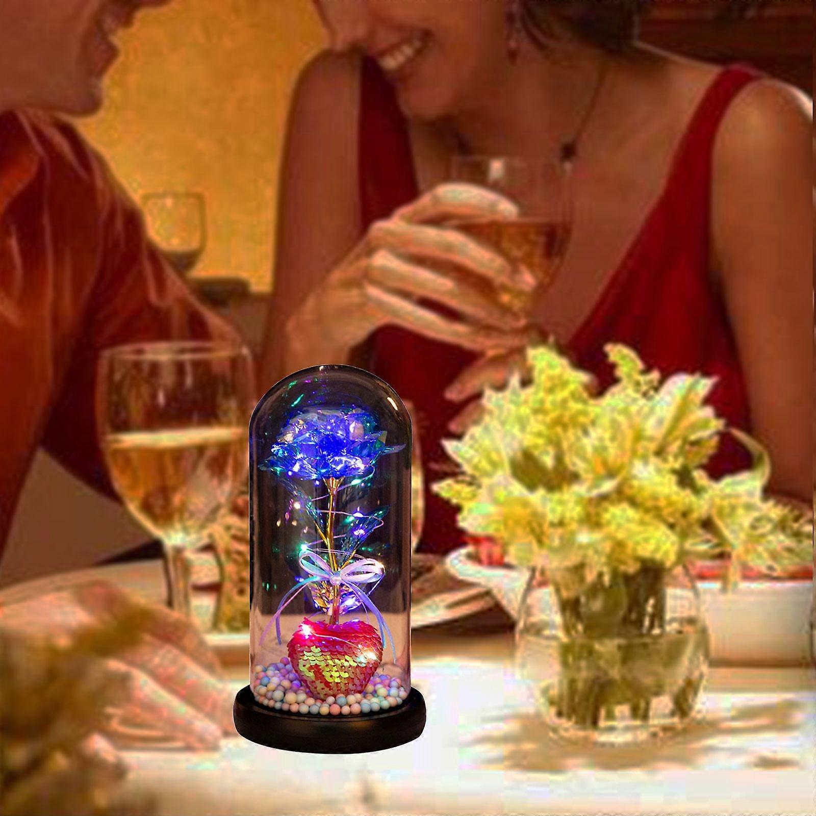 Christmas Roses for Women - Colored Roses in Glass Dome, Birthday Gifts, Compatible with Christmas Gifts for Her