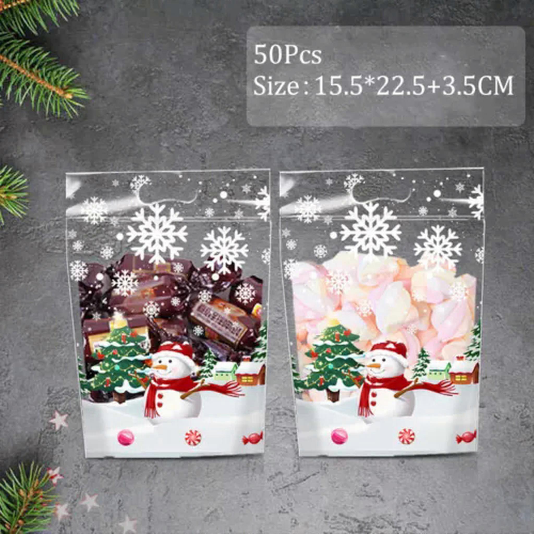 RSAMD 50/100pcs Christmas Cellophane Bags Party Cello Cookie Sweet Candy Biscuit Gifts-D 15.5*22.5+3.5cm (50pcs)