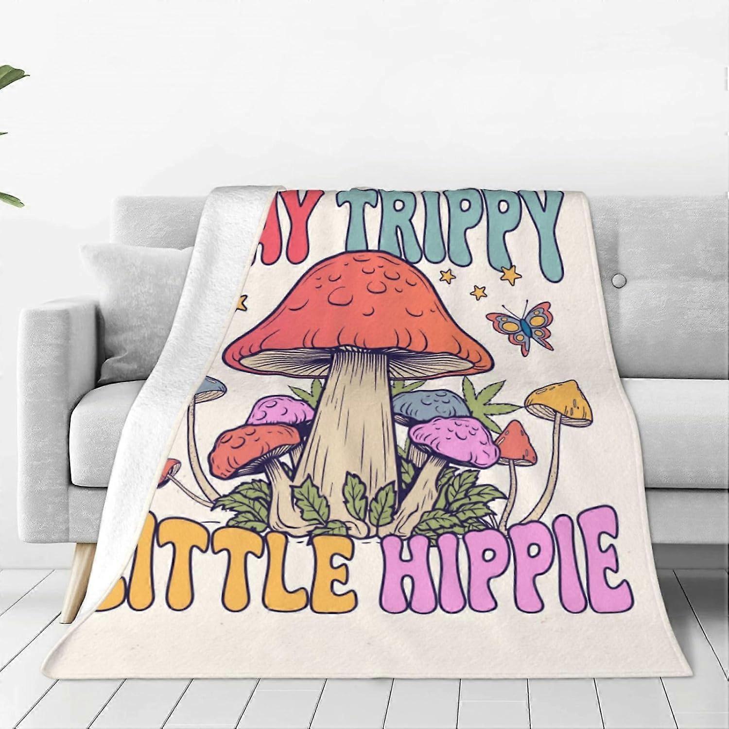Stay Trippy Little Hippie Mushroom Quotes Ultra-Soft Micro Flannel Blanket, 80"X60", for Bed, Couch, All Seasons
