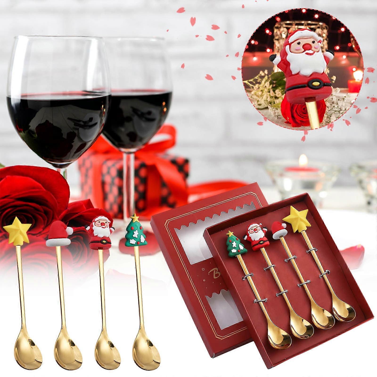 4PCS Stainless Steel Christmas Spoon Ornaments Set - Green Pendant Dessert, Coffee & Fork Spoons, Compatible with Holiday Tableware Decorations