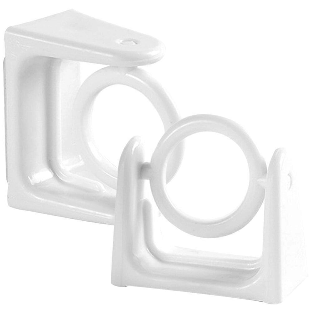 White 2 Pcs Hook Curtain Rod Rotatable Holder Closet Bracket No Punching