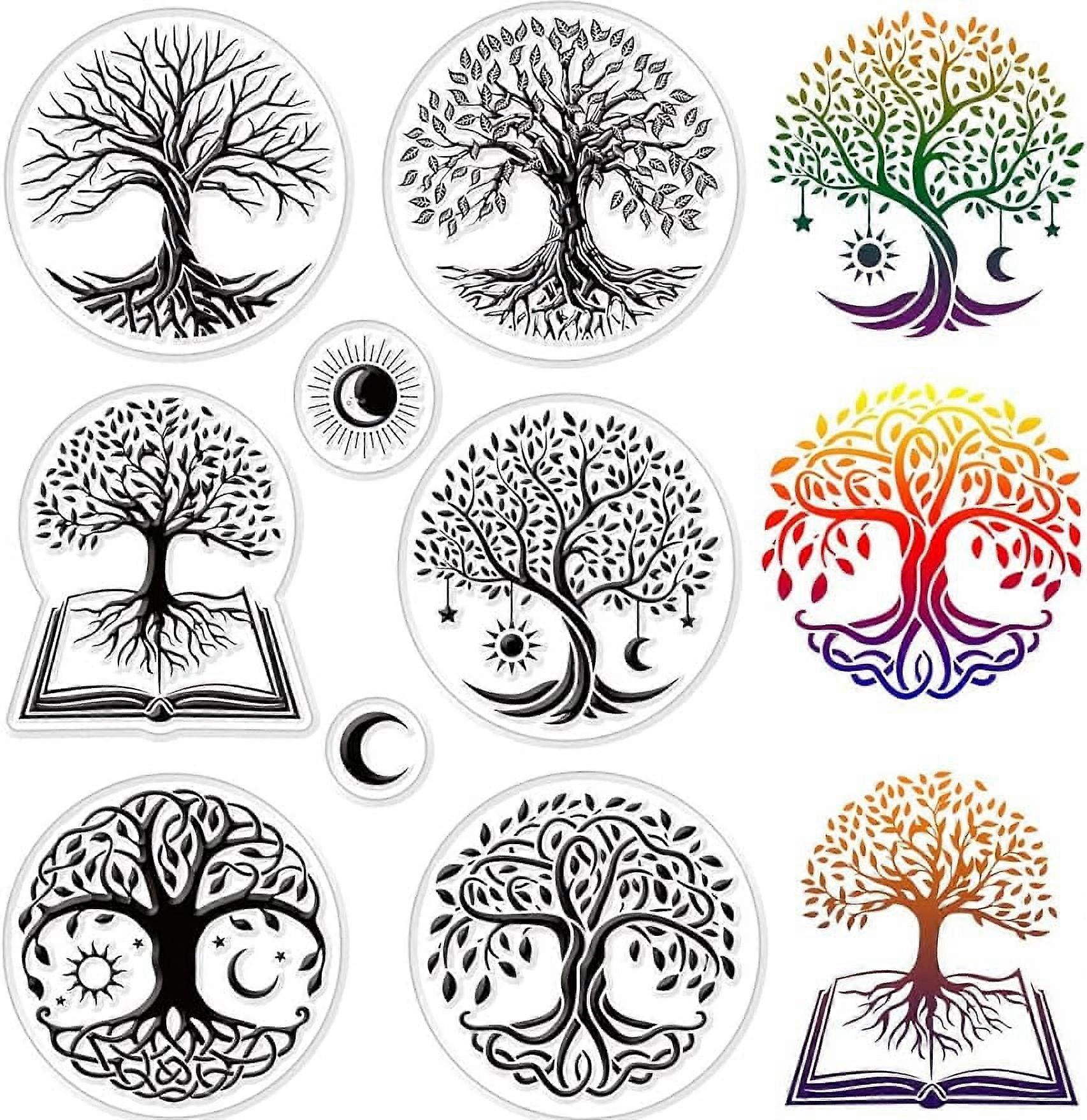 1Sheet PVC Plastic Silicone Clear Stamp Tree of Life Pattern Seal Stamps 16x11x0.3cm for Cards Making Photo Album
