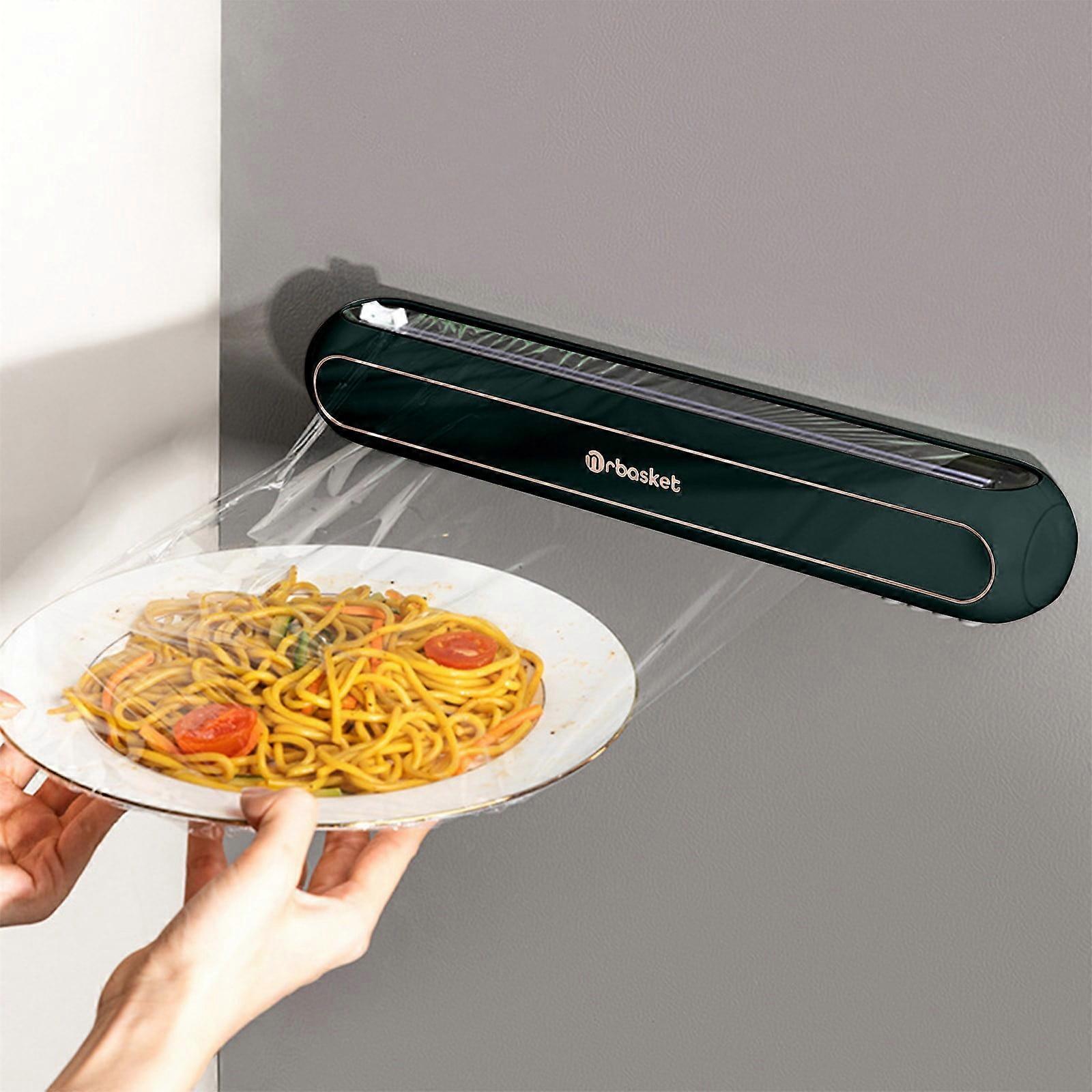 Quinlirra Adjustable Suction Cup Side Magnetic Strip Design Cling Film Cutter, Compatible with Household Tin Foil, Sliding Knife Kitchen Cutting Box