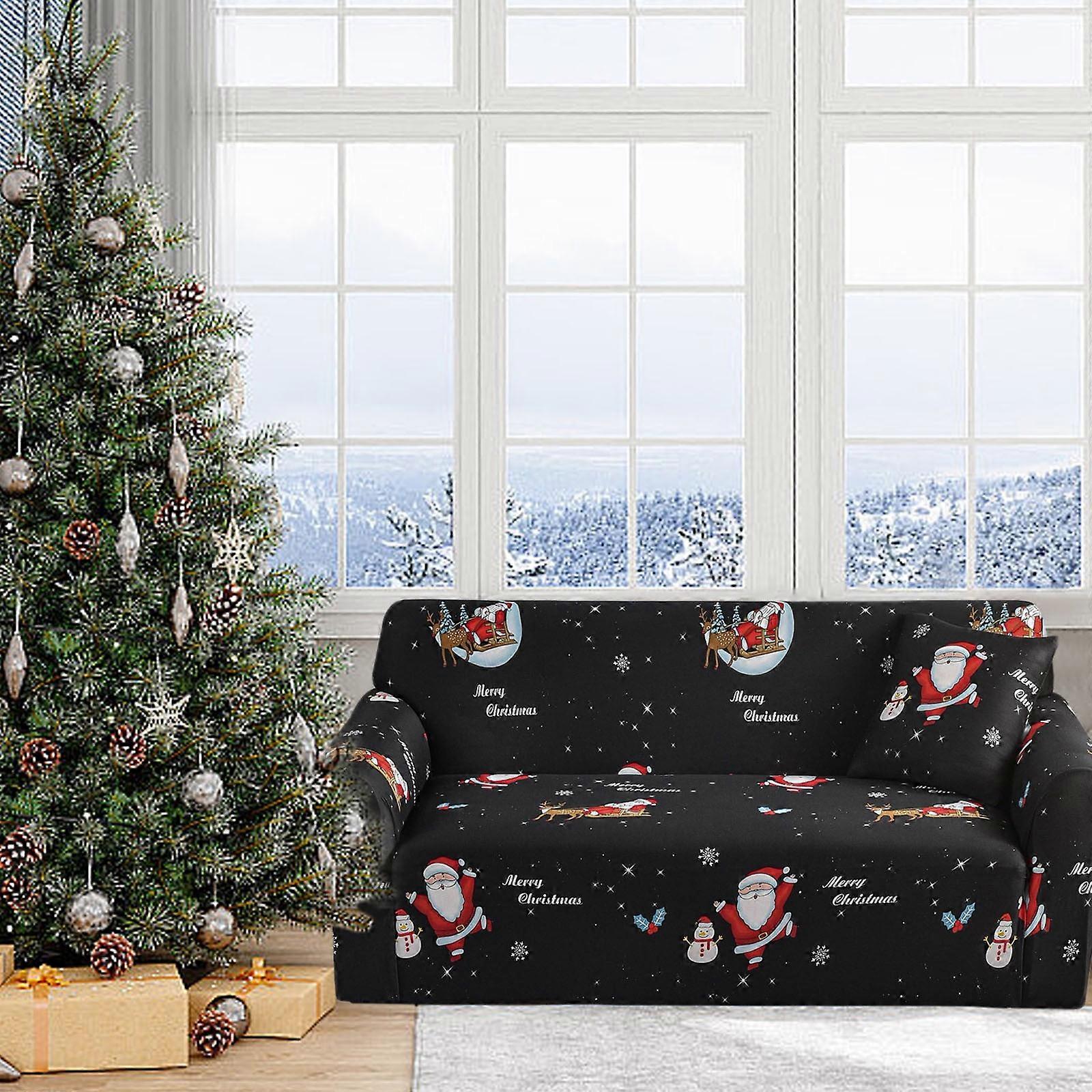 Txmfgh Christmas Printed Sofa Cover - Santa Claus Elastic Couch Slipcover, Machine Washable Festive Decor