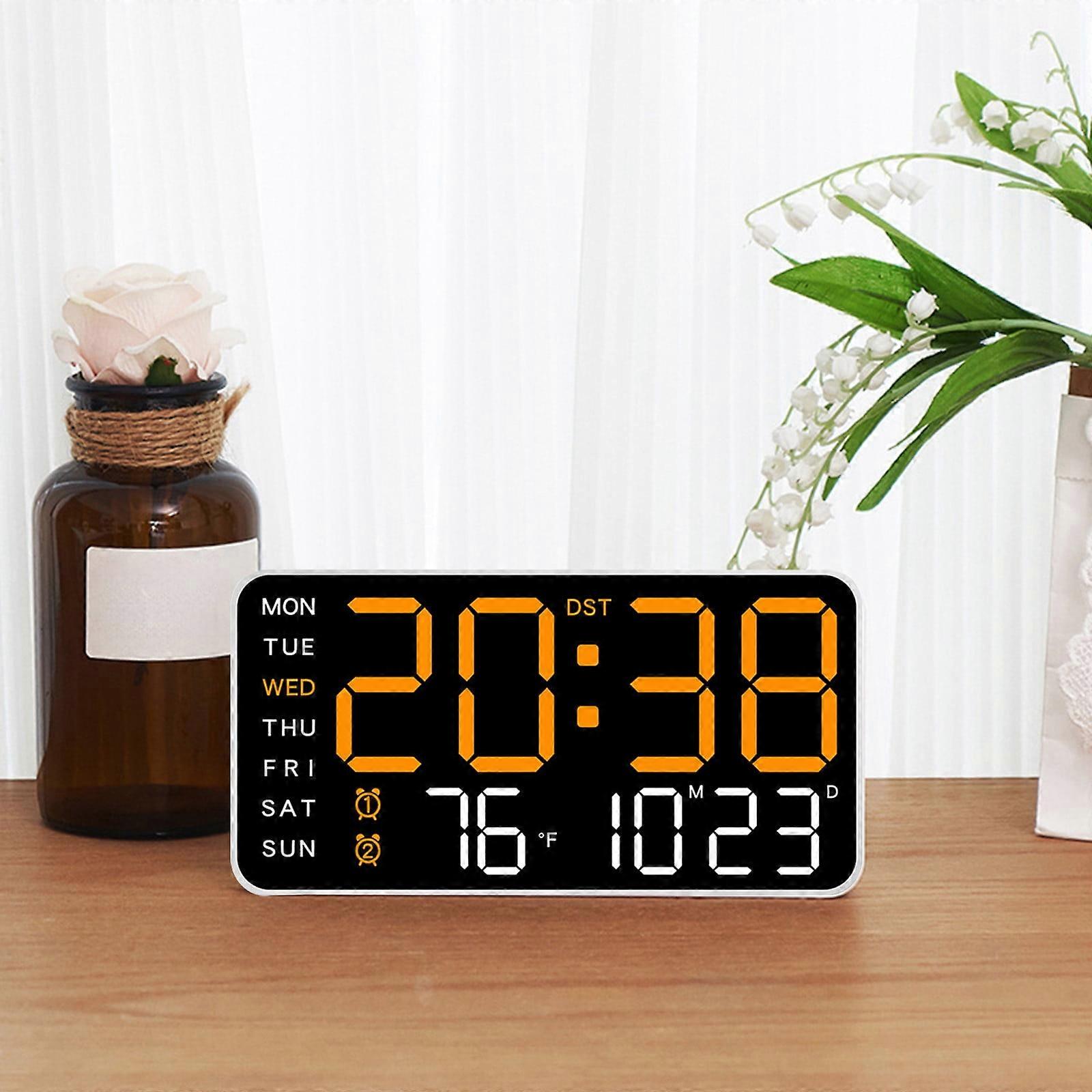 Digital Wall Clock 8.46" with Calendar, Date, Weekday, Temp, 1 USB, 2 Alarms LED Display for Office, Living Room, Bedroom, Elderly