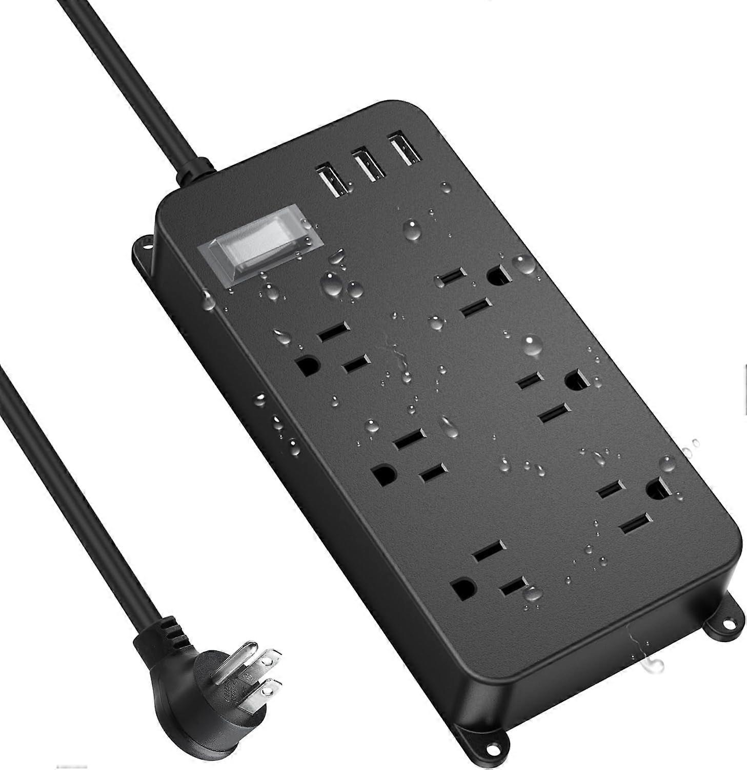 Outdoor Power Strip Weatherproof with USB,Waterproof Surge Protector,3 USB Ports, 6 Outlets,Multi Plug Electrical