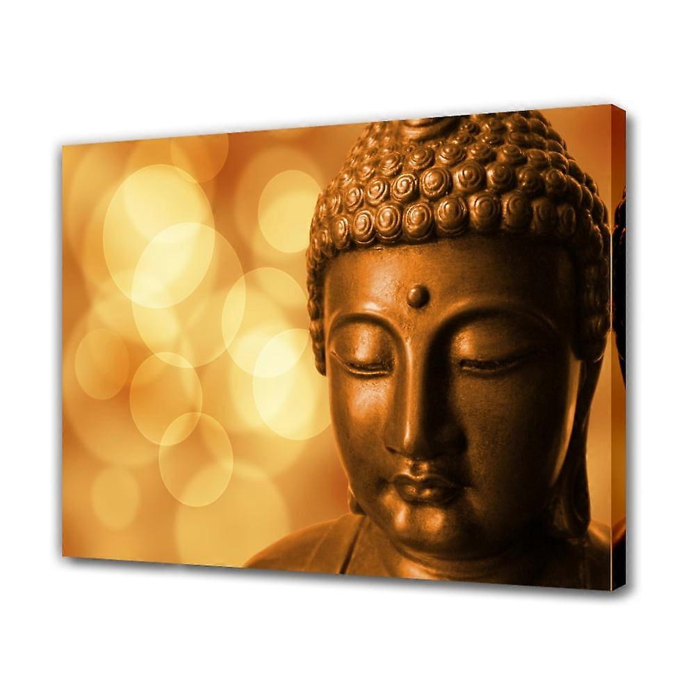 Bronze Buddha Statue with Golden Bokeh Background Canvas Poster Bedroom Decor Sports Landscape Office Room Decor Gift,Frame-style,20x30inch(50x75cm)