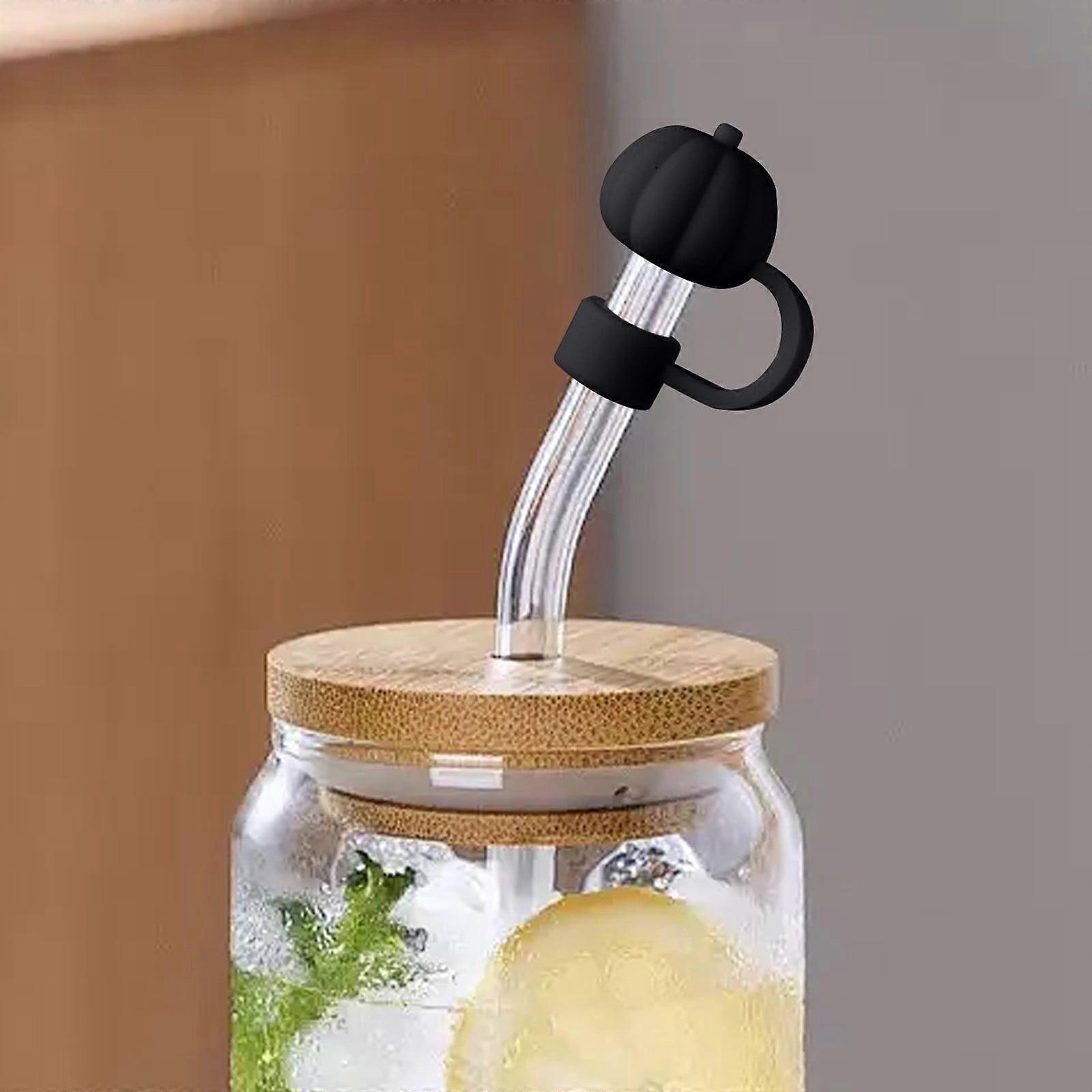 2Pcs Fall Straw Cover Cap, Black Pumpkin Silicone Reusable Topper, Autumn Thanksgiving 10mm/0.4In Lid for 30/40 oz Tumbler Cup Accessories