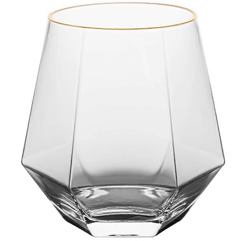 Glass Hexagon Cup Gold Rimmed Wine Glasses Clear Water Shot Cups Bourbon Drink Household
