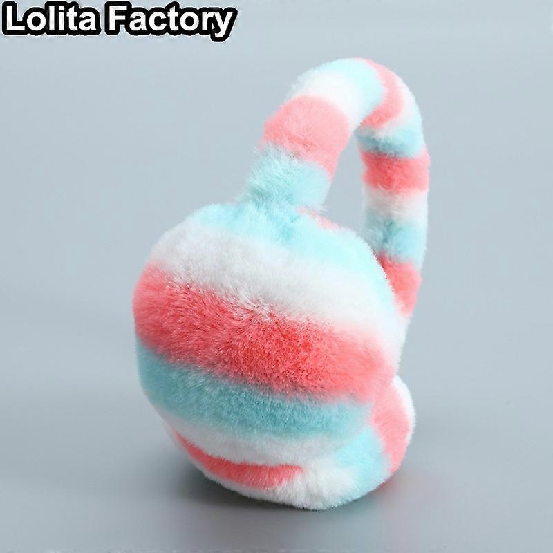 Striped rainbow plcomh earmuffs keep warm in winter Lolita is cute and sweet, and women's daily personality is unique
