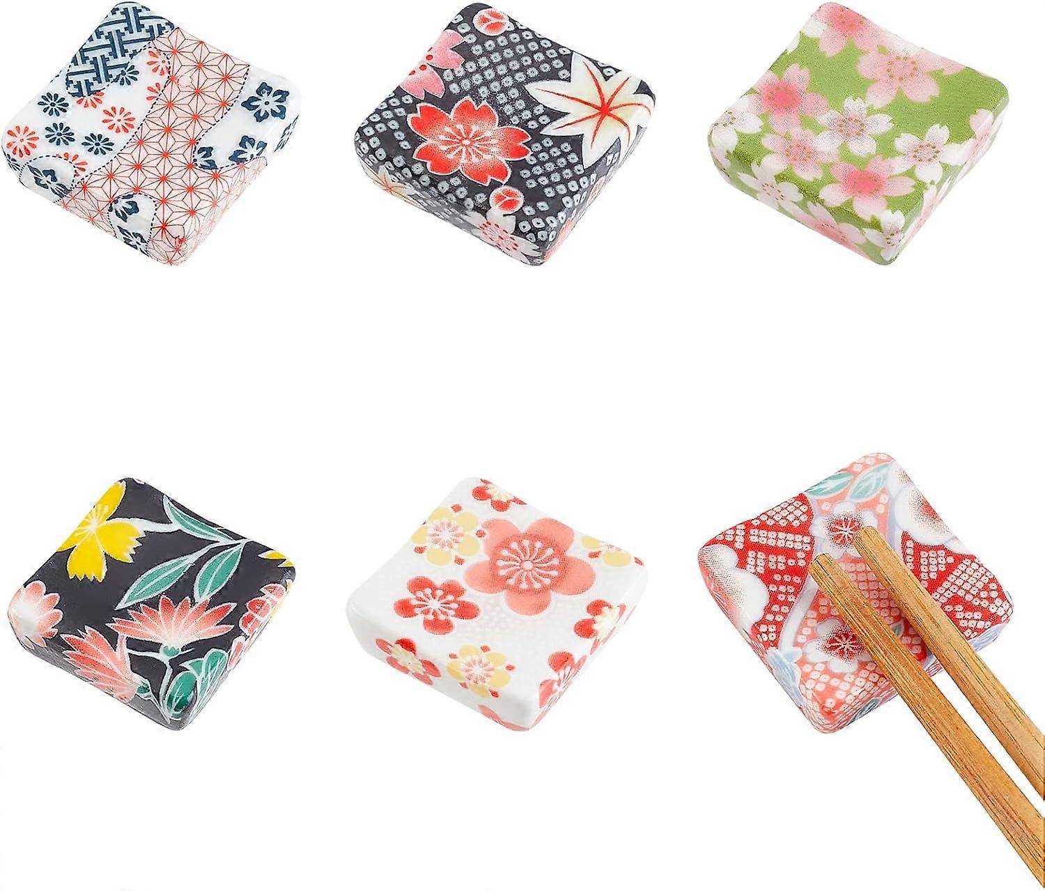6 Colors Ceramic Chopstick Rests, Japanese Style Porcelain Stand for Spoon Forks, 34x34x12mm, Kitchen Tool for Home Hotel Restaurant