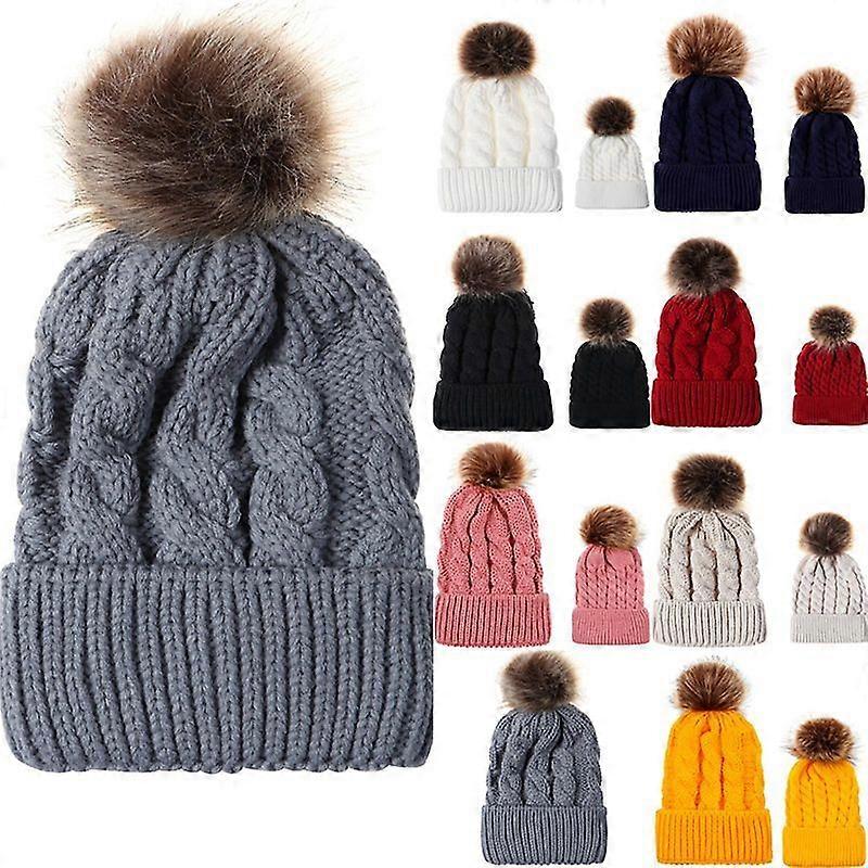 Luxora Parent-Child Mother Baby Kids Matching Knitted Hat Pom Pom Hats Winter Ski Cap