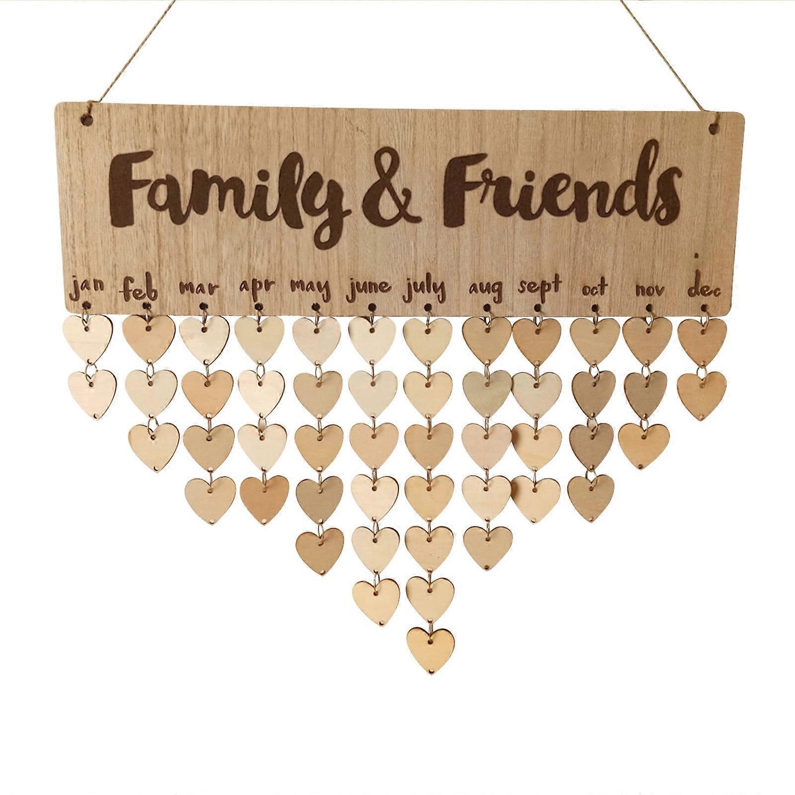 Miayilima Desktop Ornament Wooden Birthday Anniversary Wall Hanging Reminder Family Birthday Board Plaque Calendar Wooden Birthday Calendar F