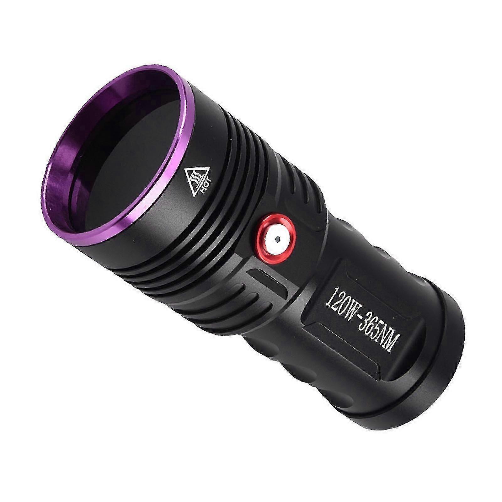 Product model: 15W Wick: 365UV LED Light wave: 365nm Product zoom: no zoom Switch key: button Working gear: 1 gear Use battery: 1*186/50/26650 rechargeable l-ithium battery Waterproof rating: IPX6 (life level waterproof) Product LM: 1000LM Product material: aviation-grade aluminum alloy Product process: electroplating fine sandblasting surface process Product color: black Product size: 16.5*4.7*3.5CM Product net weight: 208g Luminous color: purple light Full power lighting time: 3~7 hours Charging time: 2~4 hours Illumination range: 10M~100M Charger type: Type-c USB output: 5V 1A (can charge the phone) Charger specification: European standard/American standard 4-CORE 20W UV Flashlight: Product model: 20W Wick: 365UV LED Light wave: 365nm Product zoom: no zoom Switch key: button Working gear: 1 gear Use battery: 1*186/50/26650 rechargeable l-ithium battery Waterproof rating: IPX6 (life level waterproof) Product LM: 1500LM Product material: aviation-grade aluminum alloy Product process: electroplating fine sandblasting surface process Product color: black Product size: 16.6*5.2*3.5CM Product net weight: 190g Luminous color: purple light Full power lighting time: 3~7 hours Charging time: 2~4 hours Illumination range: 10M~120M Charger type: Type-c USB output: 5V 1A (can charge the phone) Charger specification: European standard/American standard 6-CORE 120W UV Flashlight: Light-emitting diode: 6365nmUV light-emitting diode Power: 120W Mode: High-low Lamp life: 100000 hours Flashlight color: black Emission color: UV Switch: middle button switch (smart battery reminder) Shell data: Aluminum alloy Size: 138mm (L) *59mm (TD) *53mm (WD) Weight (g): Approx. 339g/0.95LB (excluding packaging) Function: TYPE-C USB interface Battery: suitable for 4186/50 battery Can live waterproof (can be used in rainy days), but can not dive, can not soak in water Application field: Ultraviolet flash lamp Ultraviolet flashlight can be used as pet (dog/cat) urine detector/scorpion detector/fluorescence/detector/currency/license/card/passport certification/oil/leak detector/ore/antique identification/UV glue curing. (Without Battery) Packgage Type: 1 x Ultraviolet Flashlight 1 X Type-c USB Line (15W With Battery) Packgage Type: 1 x Ultraviolet Flashlight 1 X Type-c USB Line 1 x 186/50 2400mah battery (20W With Battery) Packgage Type: 1 x Ultraviolet Flashlight 1 X Type-c USB Line 1 x 266/50 800.0mah battery (120W With Battery) Packgage Type: 1 x Ultraviolet Flashlight 1 X Type-c USB Line 4 x 180/50 2400mah battery