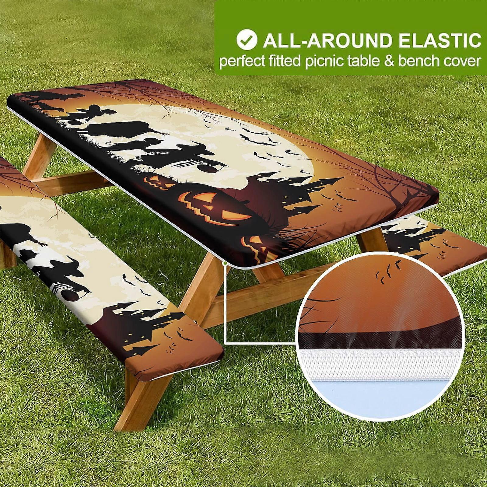 Cailmei Picnic Table Cover with Bench Cover, Waterproof Fitted Tablecloth with Elastic, Wooden Texture, Multicolor, Free Size