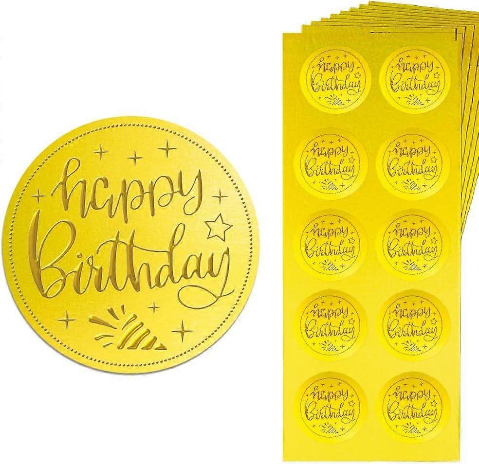 Gold Embossed Sticker Seal Happy Birthday 1.4 Inch 150Pcs Self Adhesive Golden Around Embossing Decals for Invitation Envelope Seal Gift Card Certific