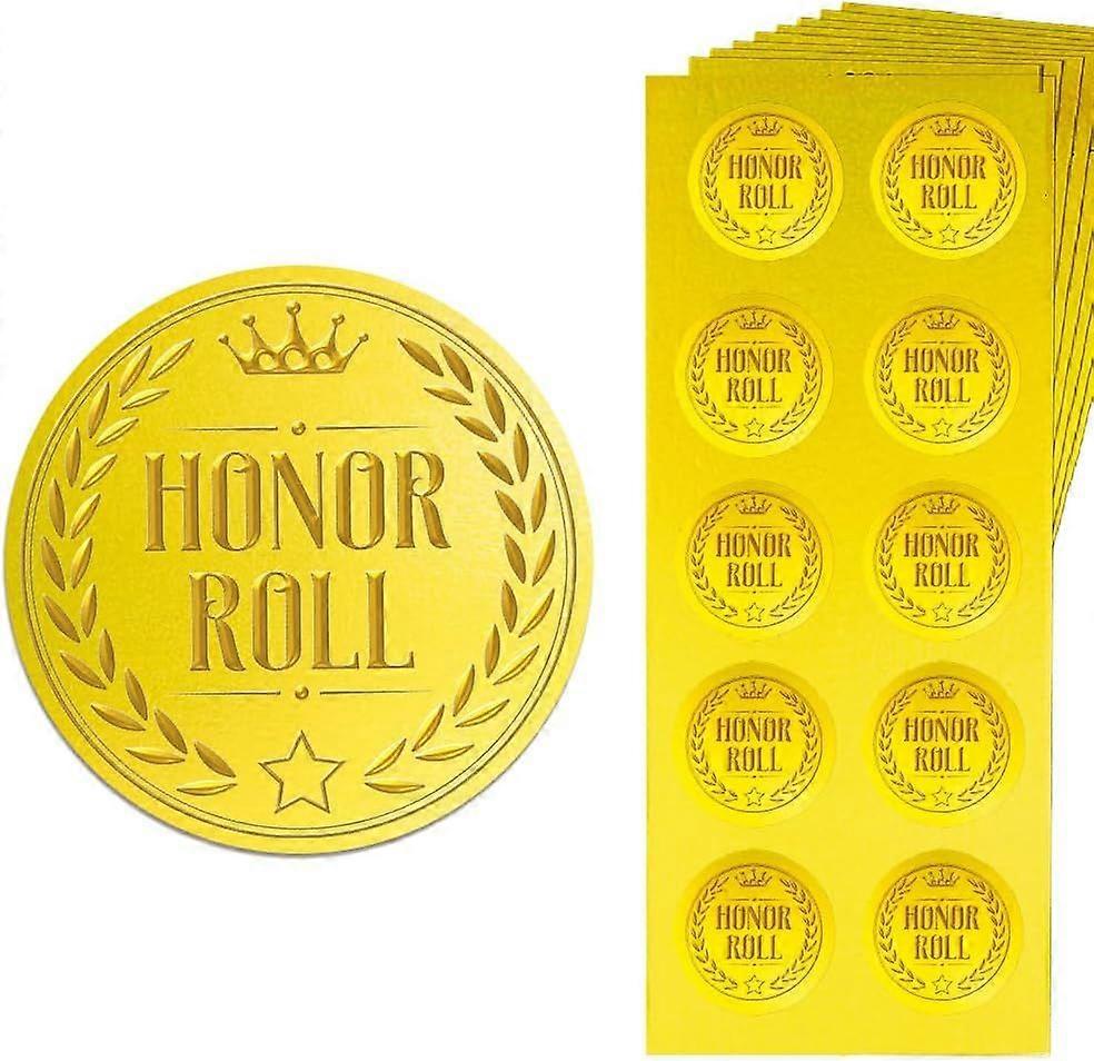 Gold Embossed Sticker Seal Honor Roll 1.4 Inch 150Pcs Self Adhesive Golden Around Embossing Decals for Invitation Envelope Seal Gift Card Certificate