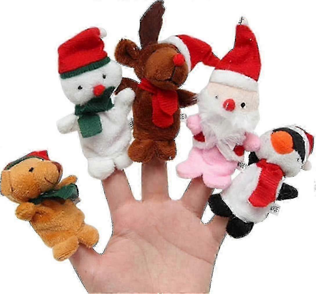 Pack Of 5 Christmas Finger Puppets Plush Reindeer Snowman Figure Toy Hand Puppet,gg - you-jinm