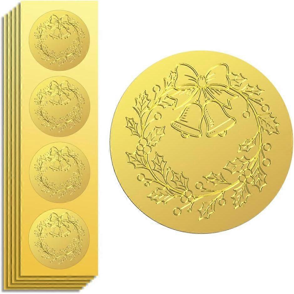 Gold Foil Sticker Seal Embossed Christmas Wreath 2 Inch 100Pcs for Christmas Gift Present Card Decor Envelop Seals Family Party Invitation Self Adhesi
