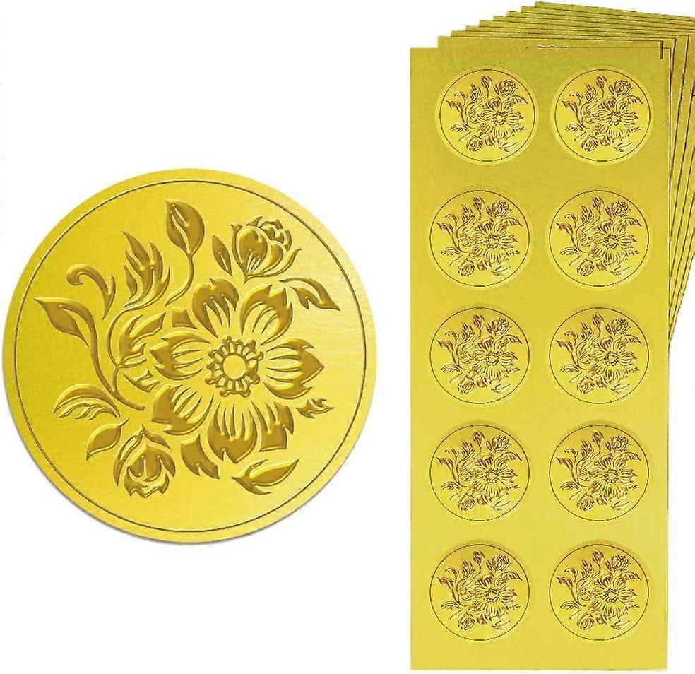Gold Embossed Sticker Seal Peony Flower 1.4 Inch 150Pcs Self Adhesive Golden Around Embossing Decals for Invitation Envelope Seal Gift Card Certificat