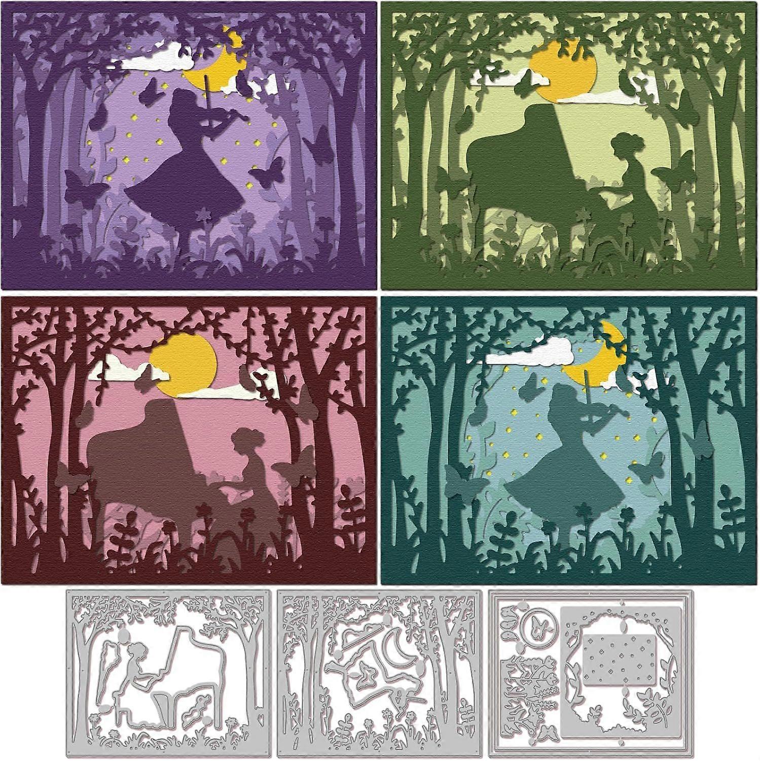 Layered Forest Piano Lady Frame Cutting Dies for DIY Scrapbooking Metal Music Wowen Background Cut Dies Flowers Butterflies Die Cuts for Card Making E