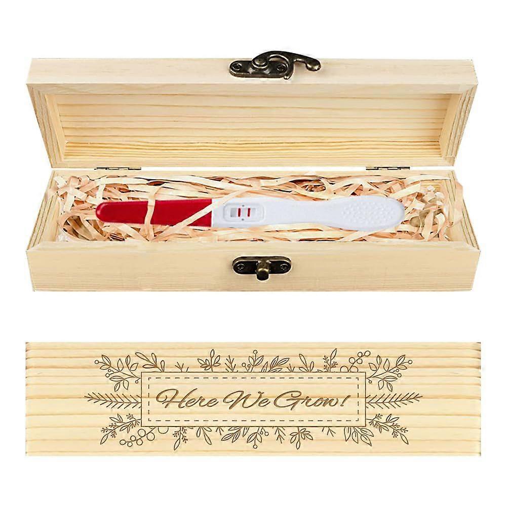 Leaf Frame Pregnancy Test Souvenir Box Wooden Pregnancy Announcement Keepsake Box with Raffia Ribbon and Lock Announcement Gifts for Dad Husband 8x2x1