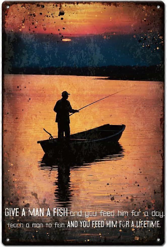 Fishing and Sunset Metal Signs Inspirational Quotes Tin Sign Boat Vintage Tin Signs Funny Wall Art Wall Poster Decor for Man Cave Bedroom Living Room