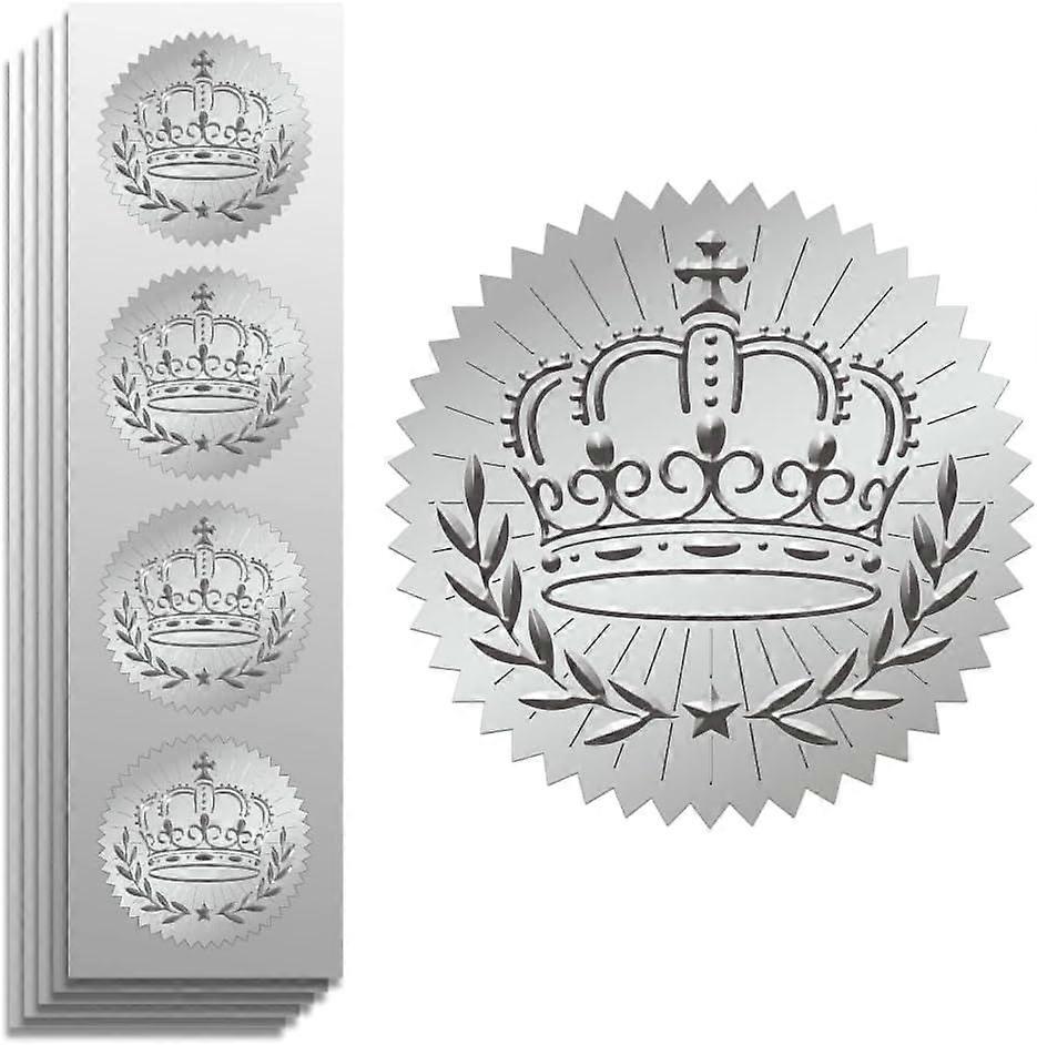 Silver Foil Sticker Seal Embossed 2 Inch 100Pcs for Christmas Gift Present Card Decor Envelop Seals Family Party Invitation Silver Around Embossing St