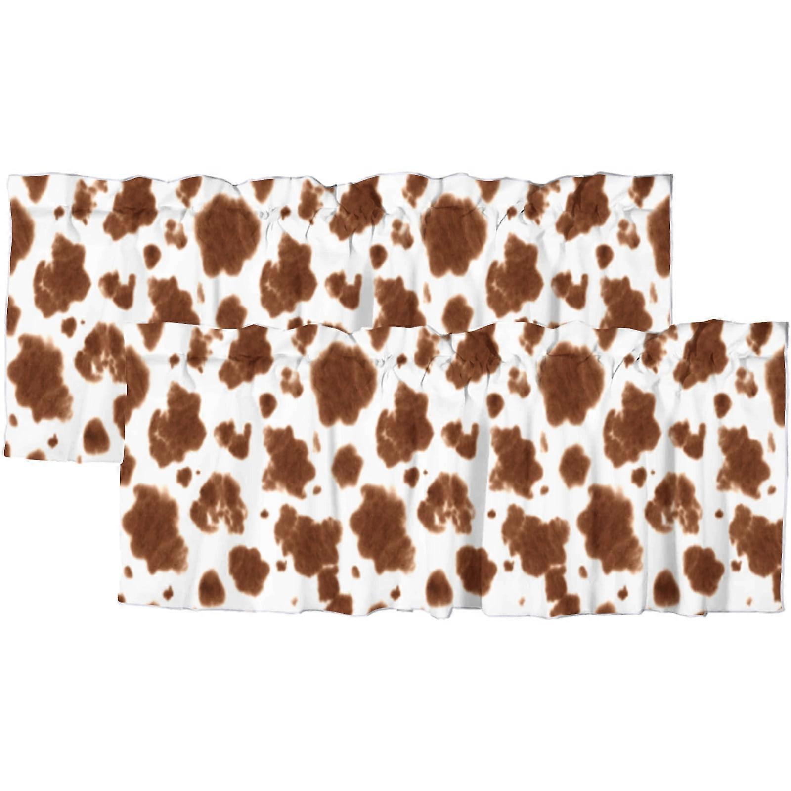 Cow Print Kitchen Valance Cattle Skin with Brown Spots Agriculture Cow Rod Pocket Decoration Window Valance Curtains 54x18inch(2Pcs)