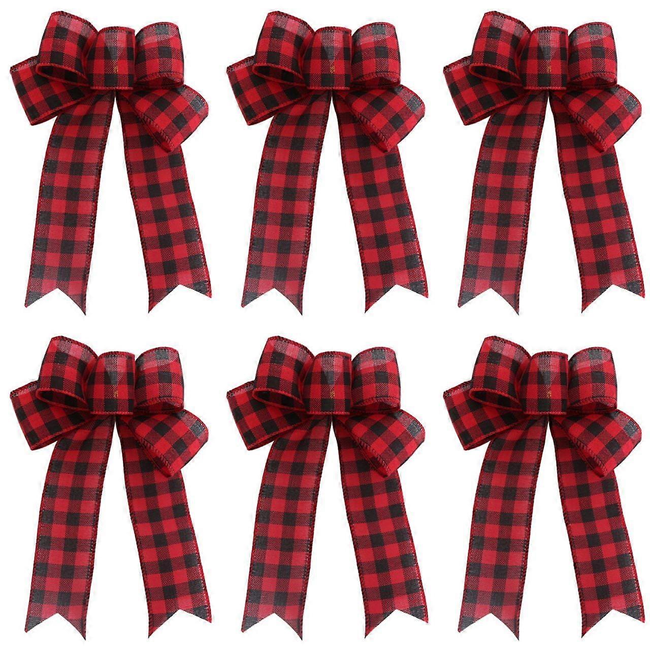 6PCS Christmas Plaid Bows 9.4x7.5" Burlap Wreath & Tree Ornament for Holiday Decor