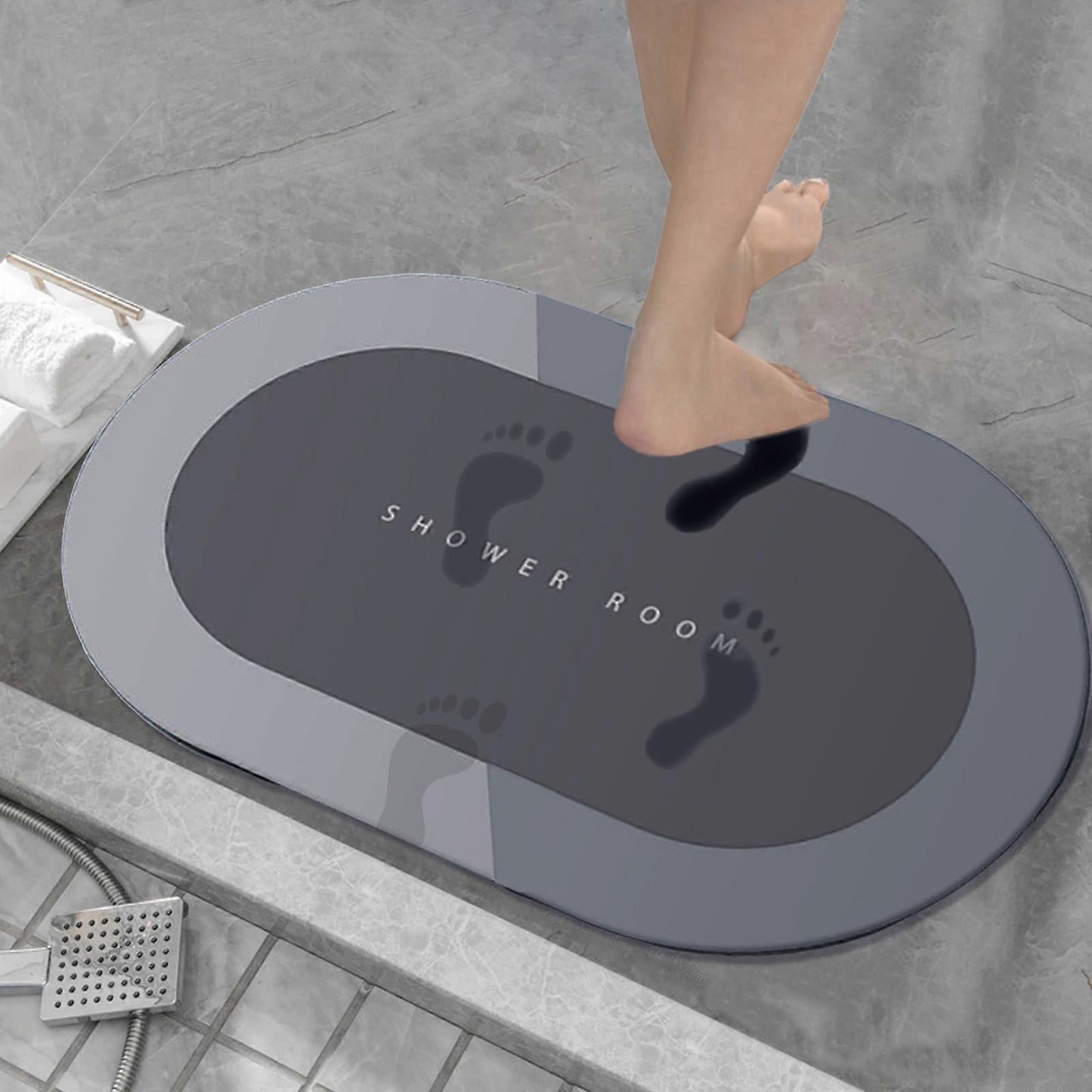 Caoilympe Diatomaceous Bath Rug 16x24in Gray - Super Absorbent, Quick Dry, Non-Slip Rubber Backing, Washable - For Bathtub Front, Shower Room