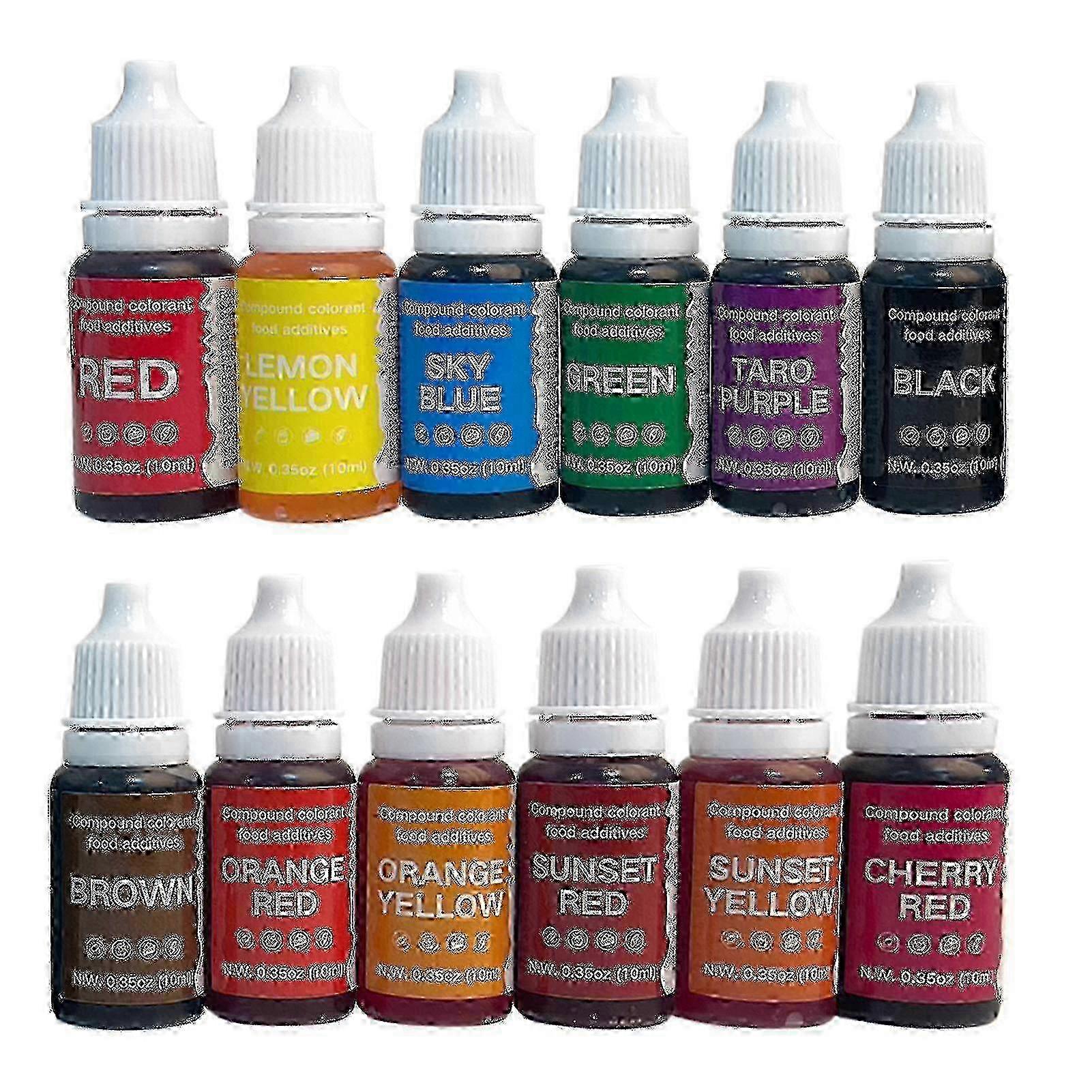 12 or 24 Piece Set of 10ml Highly Concentrated Food Coloring for Baking Cake Decorating and Cooking miao7_vsijd