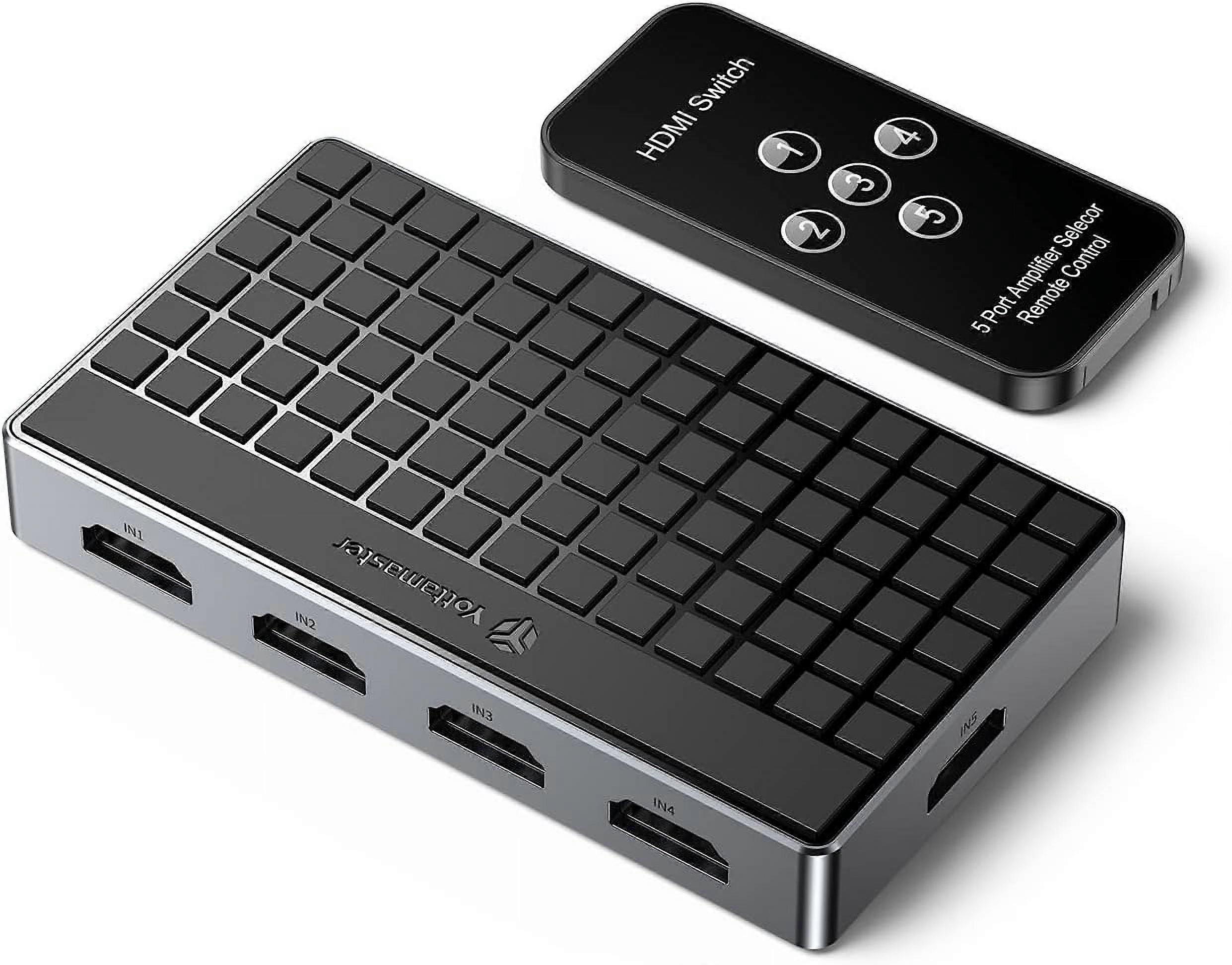 HDMI Switch 4K HDMI Selector, 4K 60Hz HDMI Switcher Splitter 5 in 1 Out with IR Remote Control, HDMI