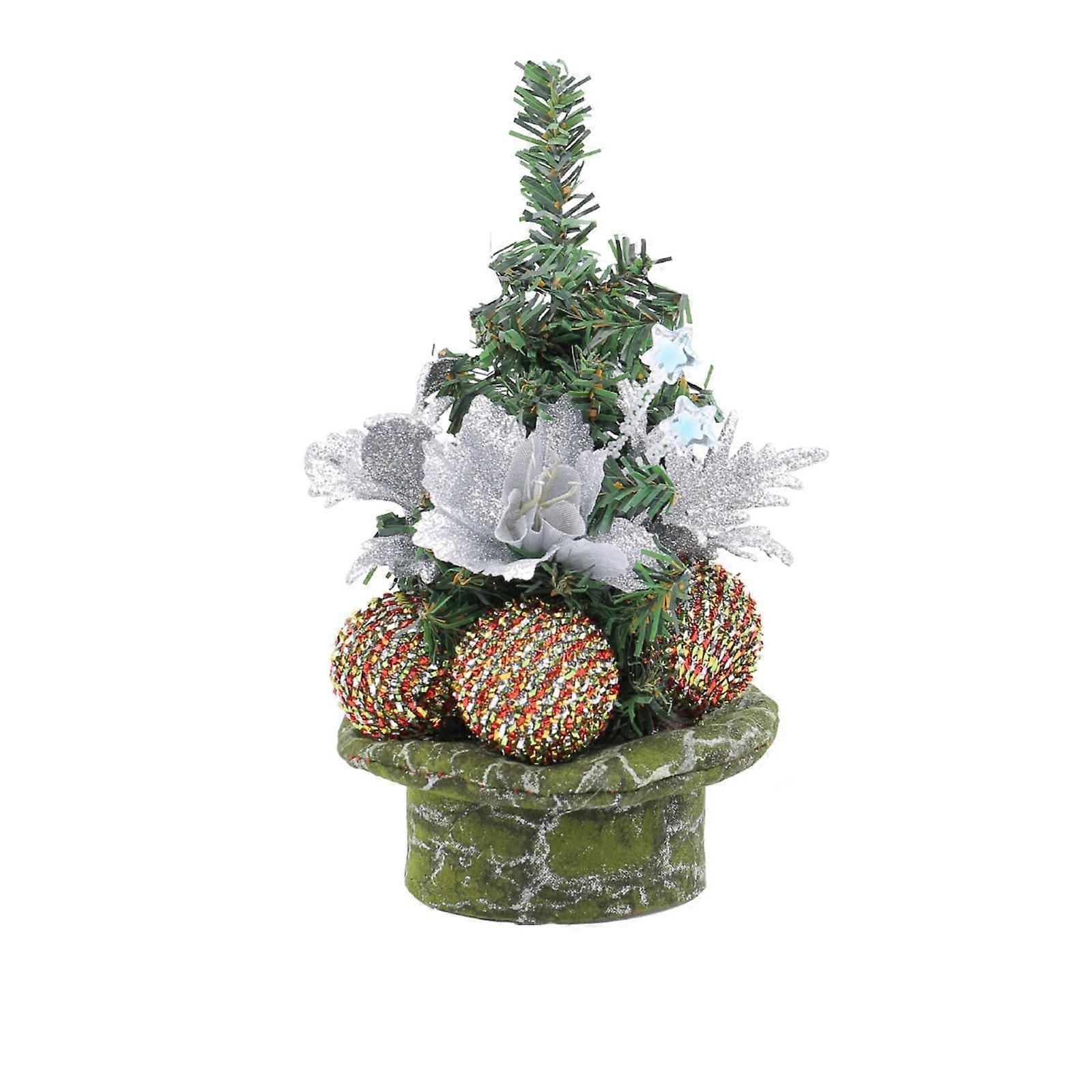 Cailmei Mini Christmas Ball Needles Small Tree Ornaments Christmas Desktop Simulation Christmas Tree Decorations Small Gifts Silver Free Size