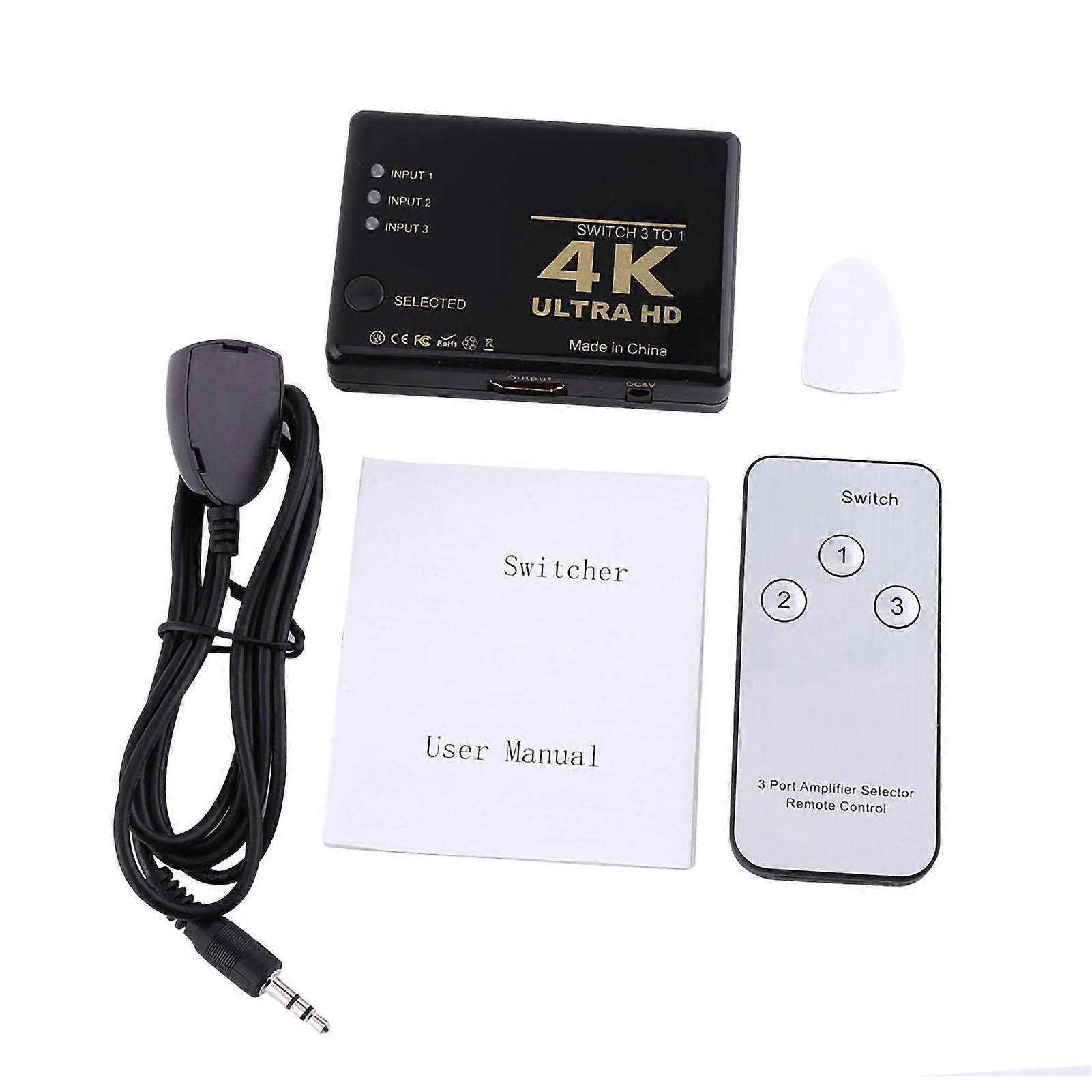 ZPSHYD Switch Splitter, HDMI Switch 3 En 1 Salida 4K Ultra HD 1080P 3 Puertos HDMI Switch Selector Splitter Hub con Control Remoto