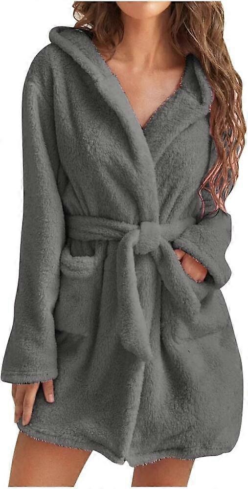 Womens Fuzzy Robe Mid Length Bathrobe Belted Soft Bath Robes Plush Kimono Robe with Pockets Fall Winter Spa Robes