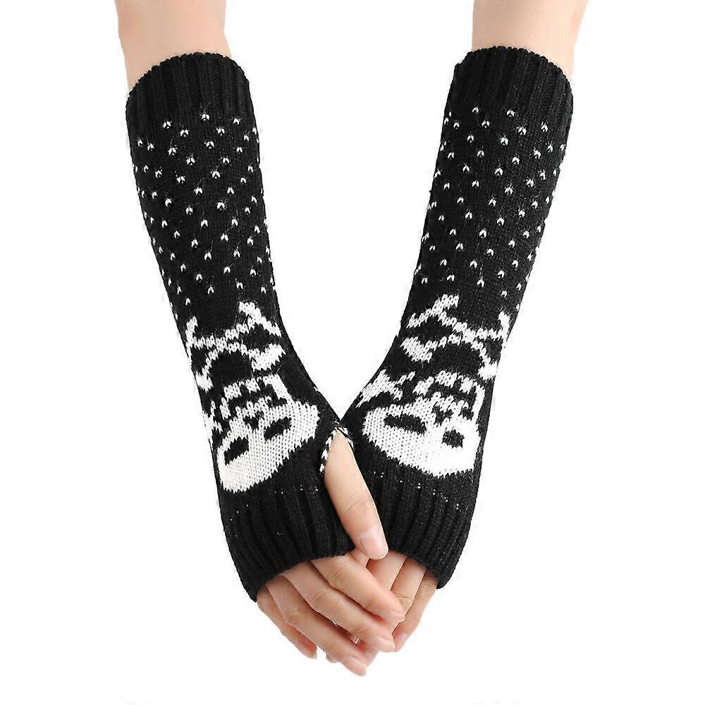 Goth Long Fingerless Sleeve Gloves Arm Warmers Girls Black Skull Gloves Women Knitting Warm Gloves Punk Keep Warm in Winter