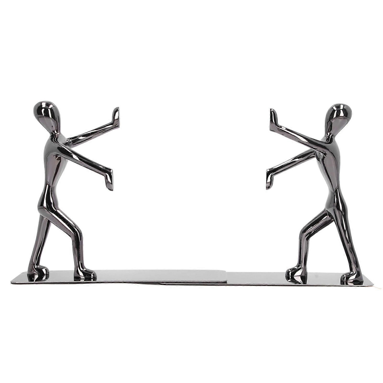 DEWIN 2Pcs Book Ends, Black Book Holders Human Shape Modern Stylish Special Design Stainless Steel Bookends Decorative