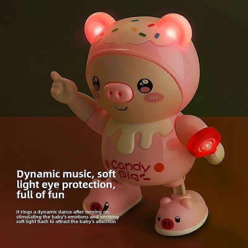 Upgraded Electronic Pet Pig Dancing Toy Doll, Electric Lighting Music Twisting Turn Left and Right Walking Cute Pig Smart Doll(D)