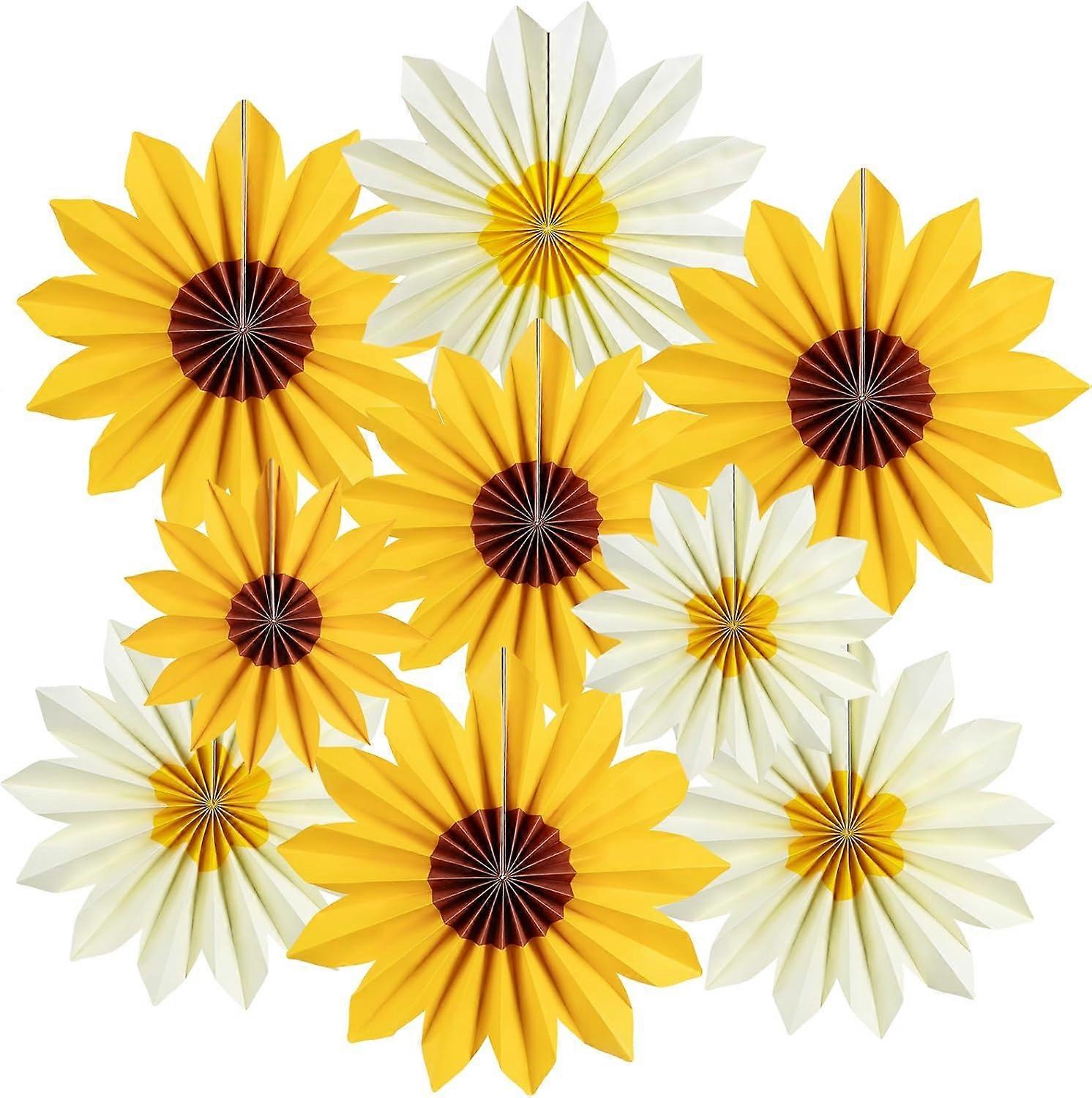 9x Sunflower Party Decorations Sunflower Paper Fans Hanging Paper Flower Fan for women for Summer Baby Shower Bulletin Board Decorations