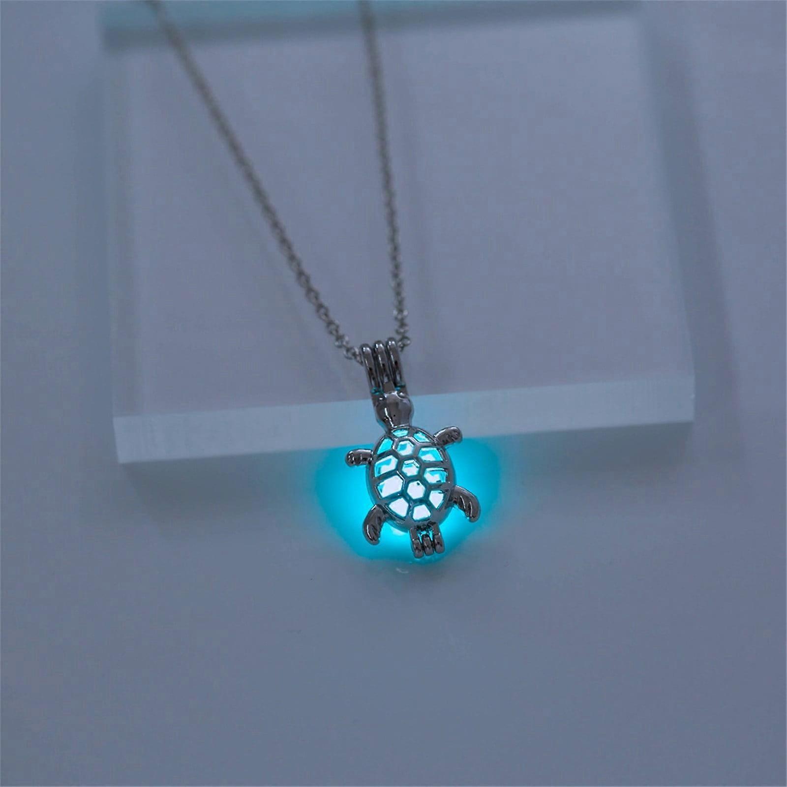 Kiplyki Luminous Hollow Out Turtle Necklace Luminous Stone Sea-Turtle Necklace for Women Girls Wonderful Gift