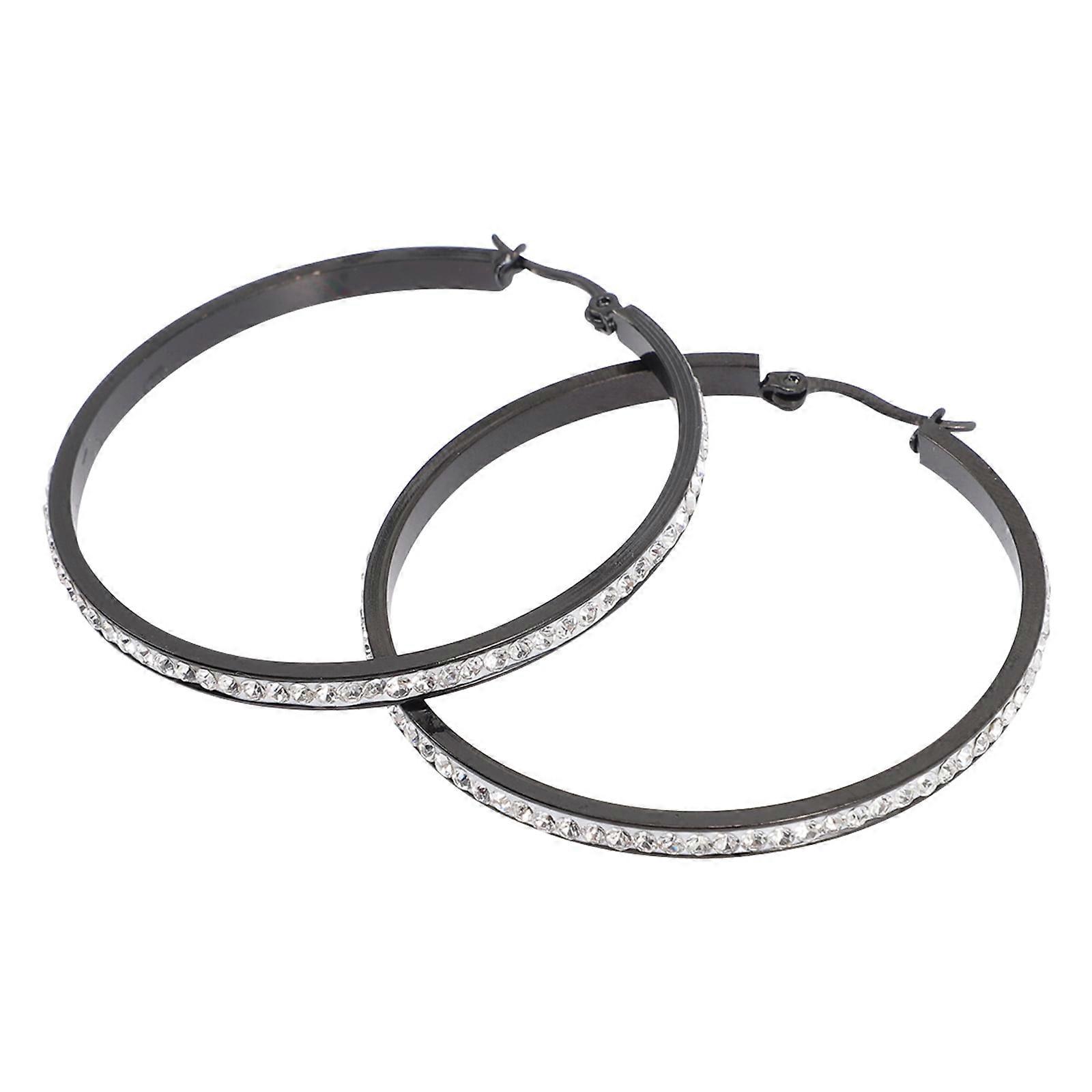 Women's Stainless Steel Hoop Earrings, Round Drop Ear Jewelry with Rhinestone & Diamond-Like Trend Design