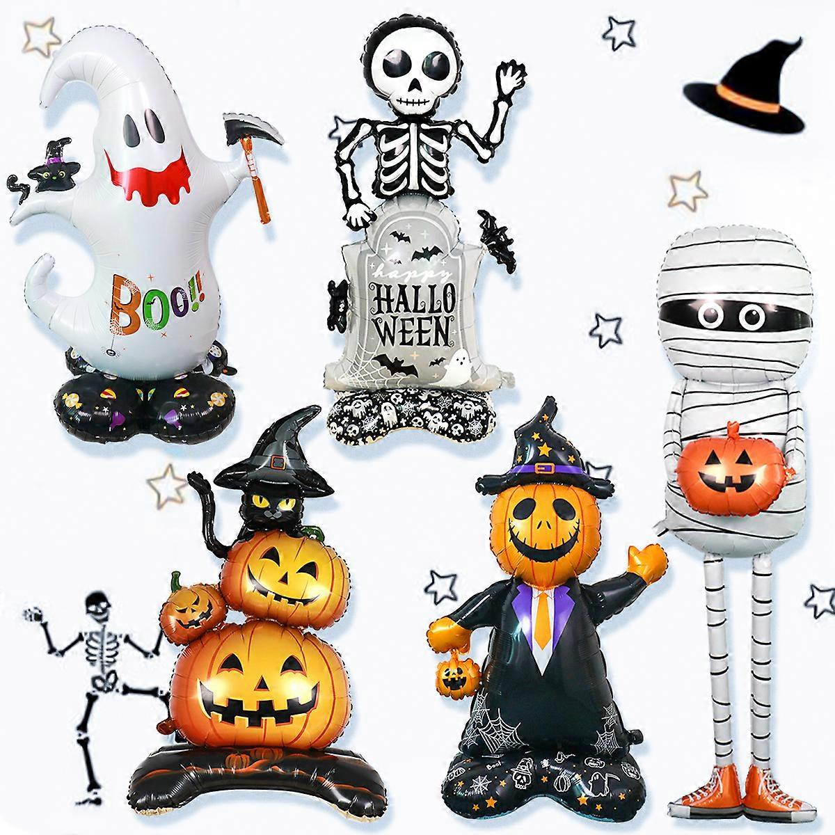1 pc Large Standing Halloween Foil Balloon, Ghost Pumpkin Balloons and Mummy Balloons for Halloween Party Decorations at Home (D) ghost
