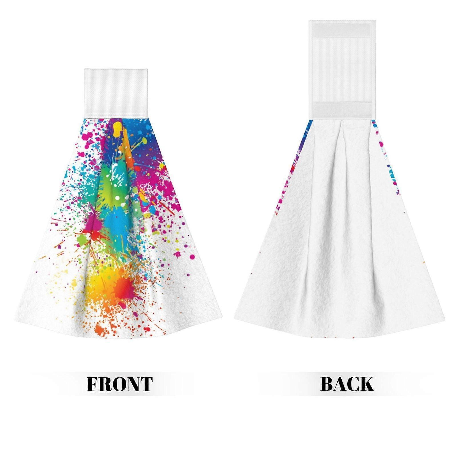 Colorful Spots Hand Towels With Velcro Loop, Coral Velvet Hand Wipes For Kitchen & Bathroom
