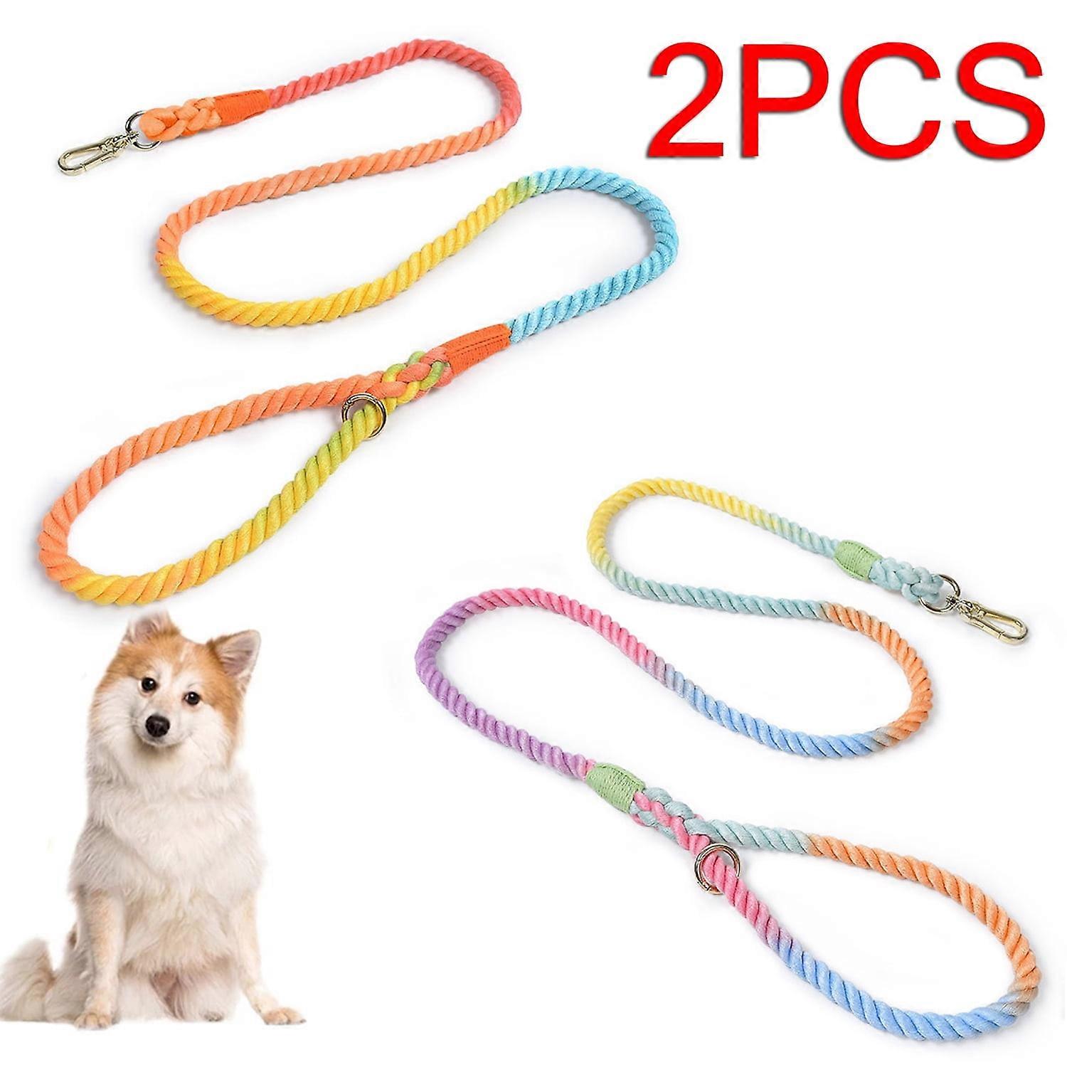2Pack Hand Woven Cotton Rope Dog Lead - Heavy Duty Clasp(Mix Color)