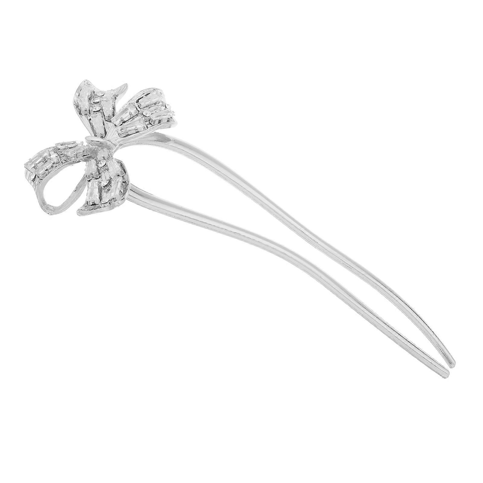 Silver Butterfly Bow Hairpin U Shaped Hair Fork for Secure Bun Hold